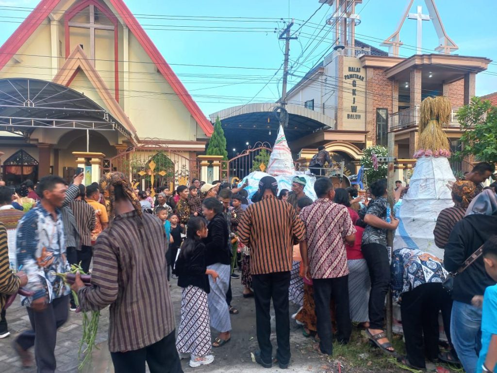 Perayaan Unduh-Unduh sendiri merupakan wujud syukur atas hasil bumi, di mana peserta membawa panenan seperti padi, jagung, dan buah-buahan sebagai simbol berkat Tuhan.