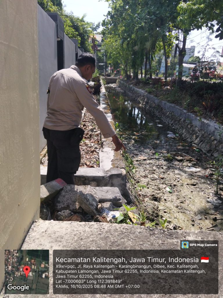 Lamongan, Analisajatim.id – Guna mengantisipasi potensi banjir yang kerap terjadi akibat perilaku masyarakat membuang sampah sembarangan ke sungai, jajaran Polsek Kalitengah Polres Lamongan melaksanakan Patroli Kota Presisi (PKP) pada Kamis (16/10/2025) pukul 08.30 WIB hingga selesai.
