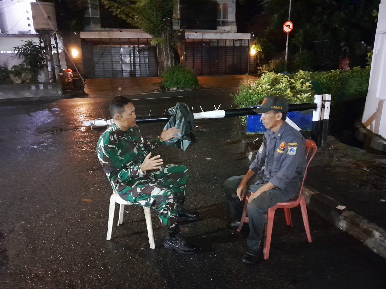 Babinsa Koramil 03/Grogol Petamburan Serda Rinto Sulistiyanto Siskamling Pam Swakarsa Bersama Komduk