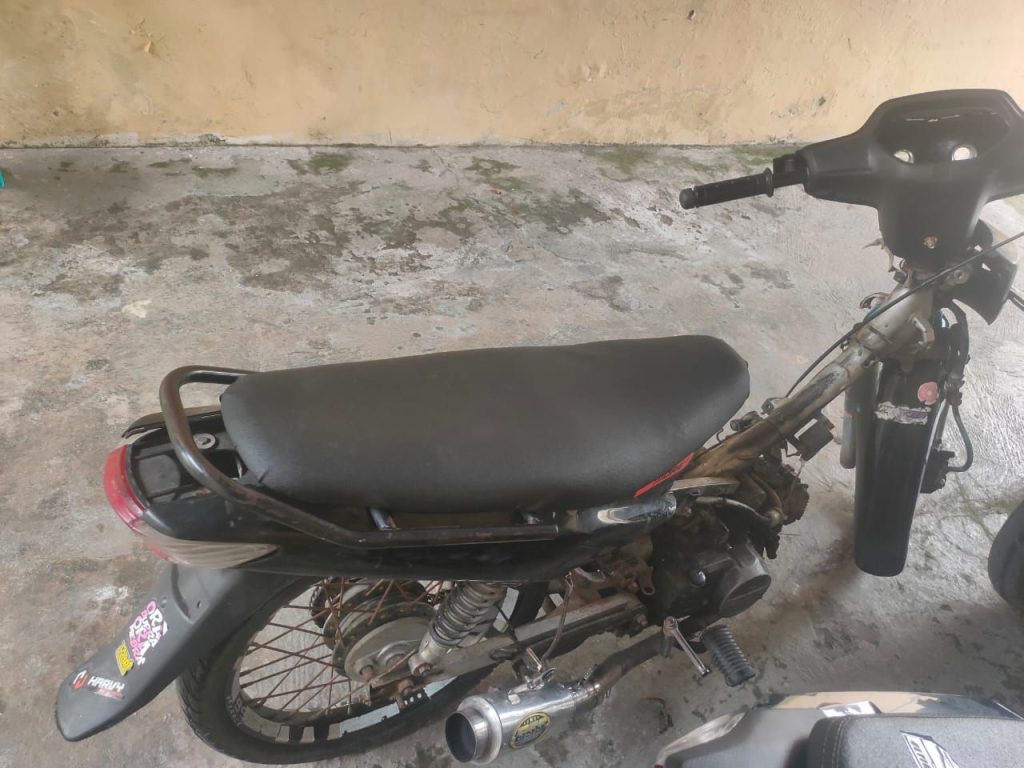 2. Honda Supra warna hitam, tanpa plat nomor, tanpa spion, menggunakan knalpot brong, pengendara tidak memakai helm.