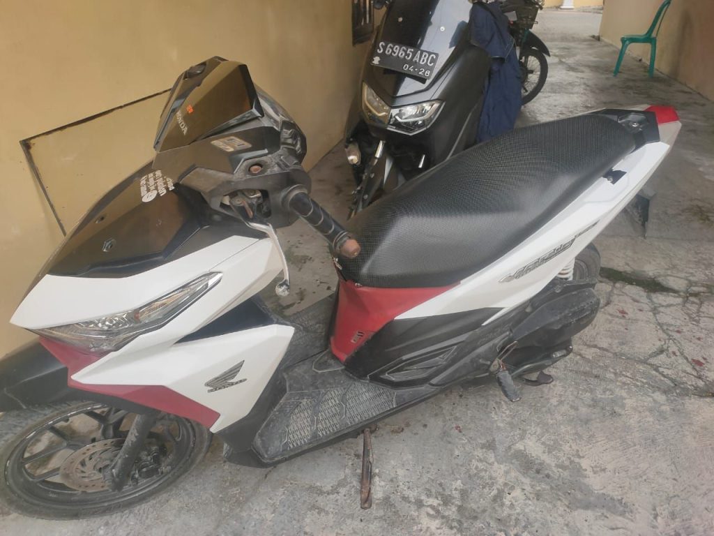 3. Honda Vario 150, tanpa plat nomor, tanpa spion, pengendara tidak memakai helm.