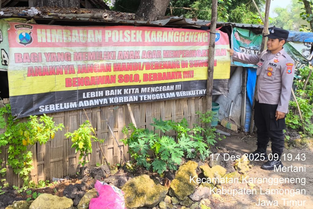 Analisajatim.id | Lamongan, – Upaya preventif terus dilakukan jajaran kepolisian untuk menekan risiko kecelakaan air di wilayah rawan. Pada Rabu (17/12/2025) pukul 09.20 WIB hingga selesai, anggota Polsek Karanggeneng melaksanakan pemasangan banner imbauan larangan mandi di aliran Bengawan Solo, tepatnya di Jembatan Karanggeneng, Desa Karanggeneng, Kecamatan Karanggeneng, Kabupaten Lamongan.