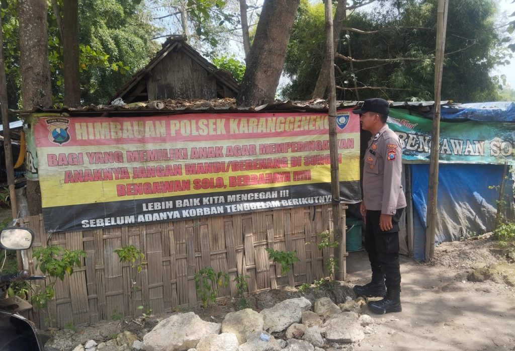 Cegah Korban Tenggelam, Polsek Karanggeneng Pasang Spanduk Imbauan di Bengawan Mertani