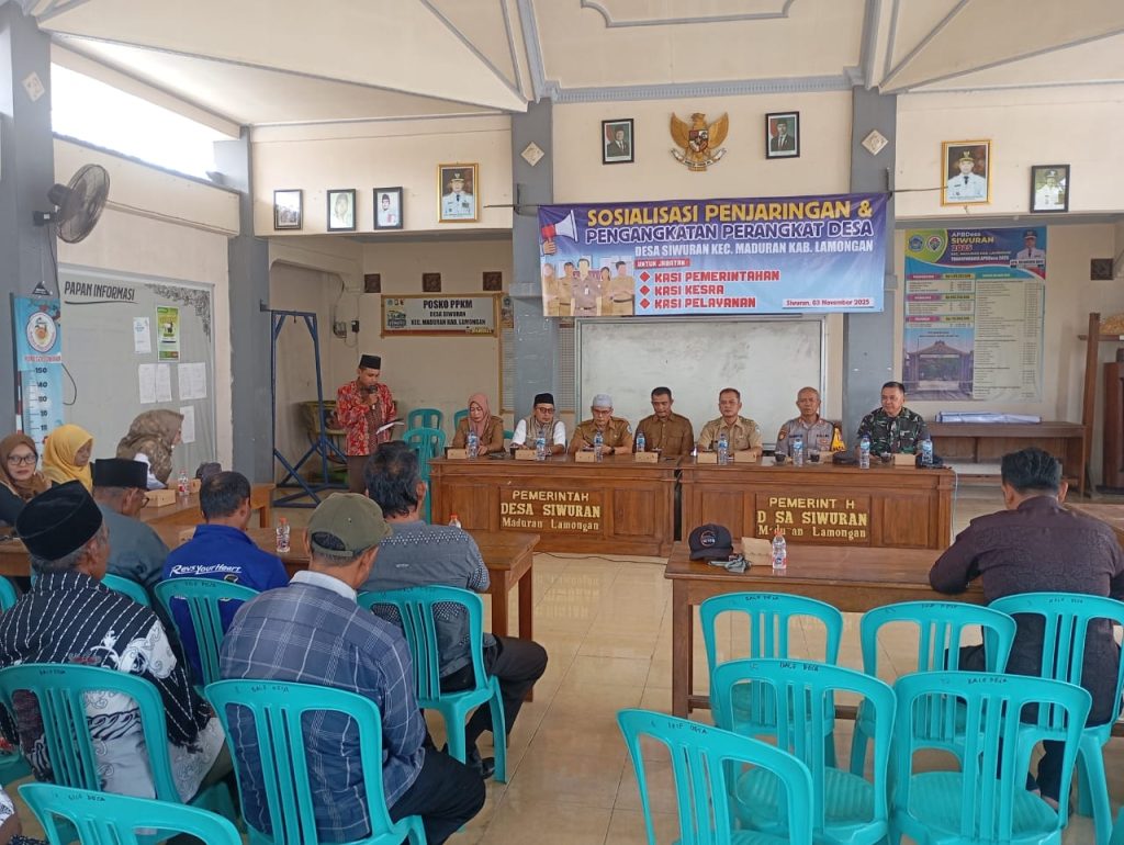 LAMONGAN | Analisajatim.id — Pemerintah Desa Siwuran, Kecamatan Maduran, Kabupaten Lamongan, menggelar kegiatan Sosialisasi dan Musyawarah Penjaringan Pengangkatan Perangkat Desa pada Senin (3/11/2025) di Balai Desa Siwuran.