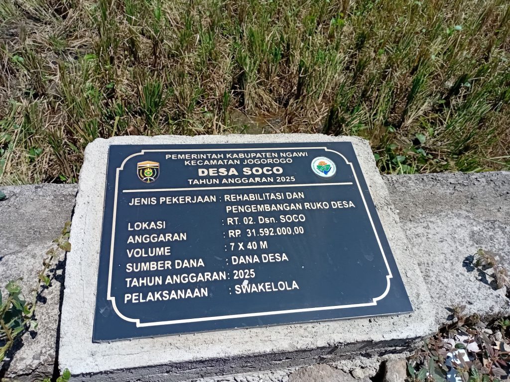 Pada tahun anggaran 2025 ini salah satu item pembangunannya adalah rehabilitasi dan pengembangan ruko desa, yang terletak didekat kantor desa dipinggir jalan raya Ngawi – Jogorogo.