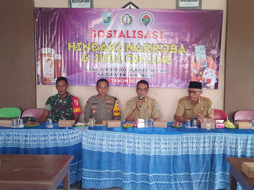 Dalam upaya membentengi generasi muda dari pengaruh negatif perkembangan zaman, Forum Komunikasi Pimpinan Kecamatan (Forkopimcam) Turi menggelar sosialisasi bahaya narkoba dan judi online di Balai Desa Sukorejo, Kecamatan Turi, Kabupaten Lamongan, pada Selasa (11/11/2025).