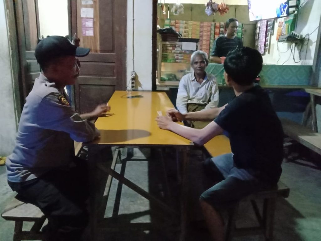 AIPTU Irwan dan AIPDA Fadhil yang bertugas menyampaikan pesan kamtibmas langsung kepada pengunjung warkop, terutama para pemuda dan warga setempat.