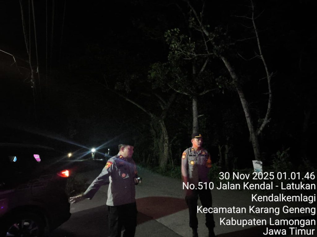 LAnalisajatim.id | Lamongan – Malam Minggu yang biasanya ramai tidak membuat jajaran Polsek Karanggeneng lengah. Justru pada dini hari, Minggu (30/11/2025), sekitar pukul 00.10 WIB, dua personel jaga melakukan Patroli Blue Light, sebuah patroli bercirikan lampu rotator biru menyala yang menjadi tanda kehadiran polisi untuk mencegah gangguan keamanan dan ketertiban masyarakat (Guantibmas).