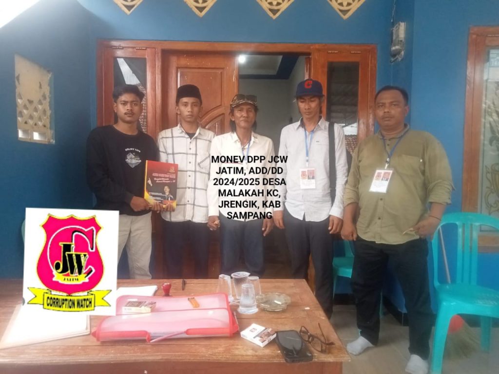 Analisajatim.id | Sampang, – Upaya memperkuat transparansi dan mencegah penyimpangan penggunaan Dana Desa terus digencarkan Dewan Pengurus Provinsi (DPP) Jatim Corruption Watch (JCW) Jawa Timur. Rabu (3/12/2025), lembaga antikorupsi tersebut melakukan monitoring ke tiga desa di Kecamatan Jrengik, Sampang, yakni Desa Malakah, Bancelok, dan Buker.