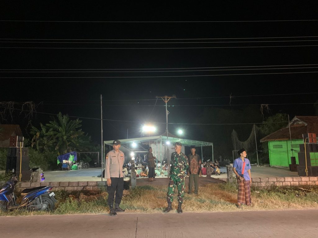 Para personel menerapkan sistem pengamanan terbuka dan tertutup untuk memastikan kelancaran kegiatan, yang diindikasikan merupakan agenda masyarakat lokal seperti hajatan desa atau pertemuan komunitas, mengingat karakteristik kegiatan sosial di wilayah Lamongan yang kerap melibatkan banyak warga.