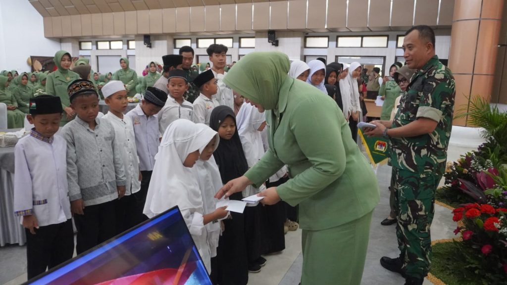 Sebelum memberikan pengarahan kepada anggota dan Persit, sebagai bentuk kepedulian, Danrem 052/Wkr memberikan tali asih kepada 40 anak-anak yatim piatu dan 10 Warakawuri.