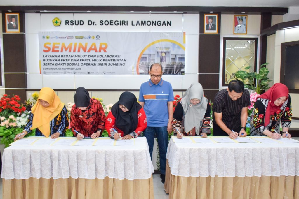 Dukungan tersebut disampaikan langsung oleh Bupati Lamongan Yuhronur Efendi saat menjadi narasumber dalam Seminar Layanan Bedah Mulut dan Kolaborasi Rujukan Fasilitas Kesehatan Tingkat Pertama (FKTP) dan Fasilitas Kesehatan Rujukan Tingkat Lanjutan (FKRTL) milik pemerintah, yang digelar di Aula Lantai 3 RSUD dr. Soegiri, Sabtu (1/11/2025).