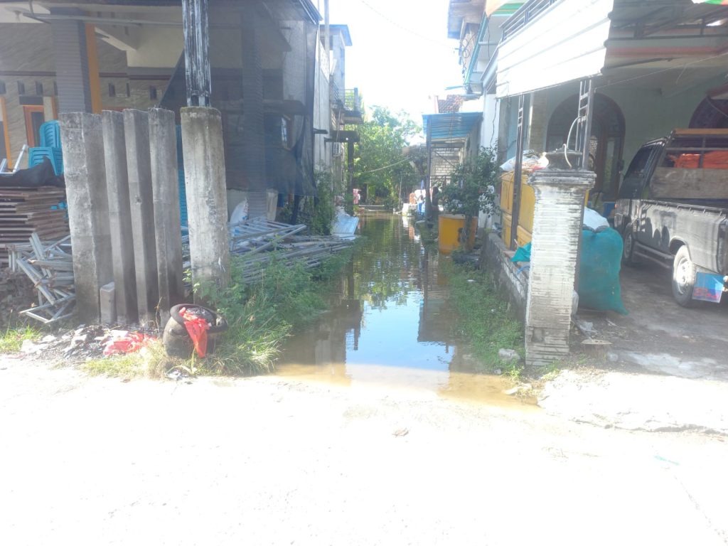 Jalan poros desa tergenang sepanjang 50 meter dengan kedalaman 10–15 cm. Sebanyak 142 hektar tambak ikan dan 18 rumah warga terdampak.