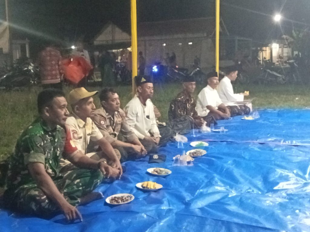 Sejumlah tokoh dan petugas keamanan mengikuti rangkaian kegiatan Sedekah Bumi di Lapangan Desa Latukan, Minggu malam (26/10/2025).