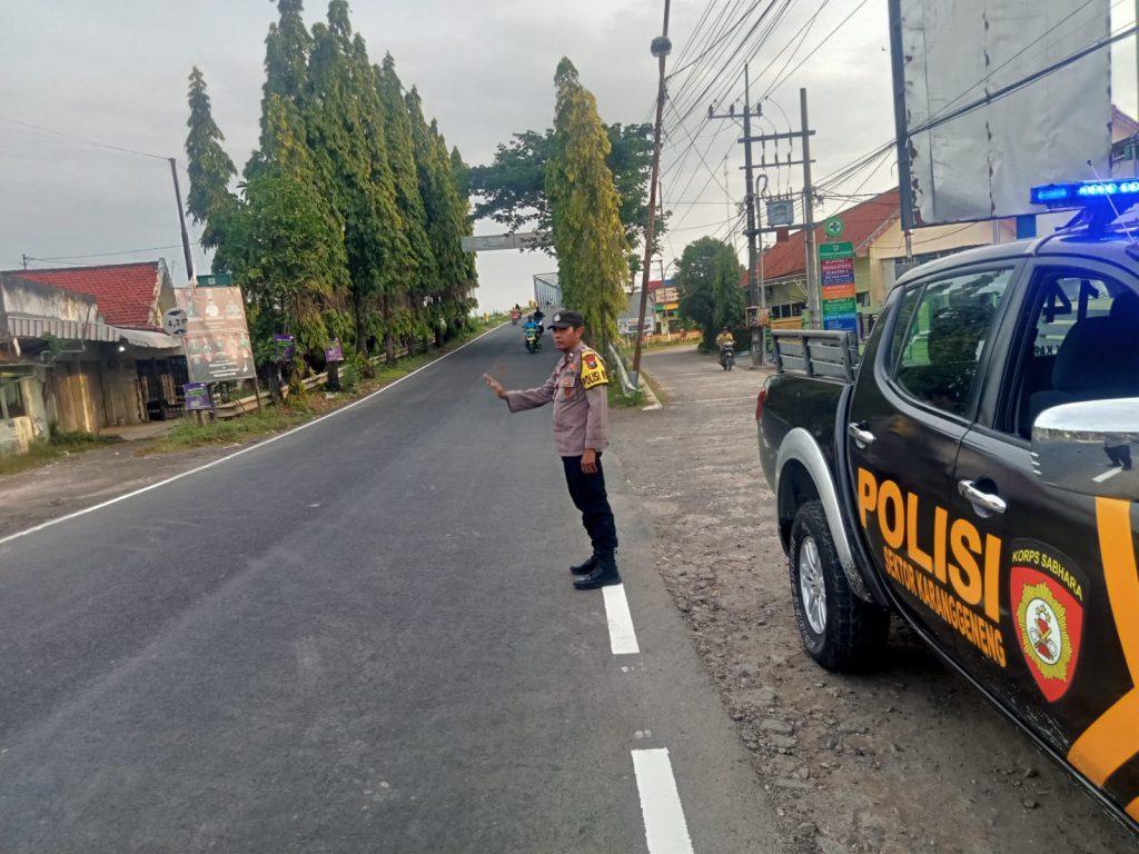 Analisajatim.id | Lamongan, – Guna memastikan kelancaran dan keamanan arus lalu lintas di jam sibuk pagi hari, jajaran kepolisian melaksanakan kegiatan pengaturan lalu lintas di Jalan Raya Desa Karanggeneng, Kecamatan Karanggeneng, Kabupaten Lamongan, Rabu (17/12/2025).