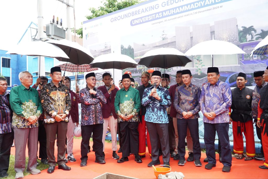 Ketua PDM Lamongan Shodikin, Ketua PWM Jatim Sukadiono, serta Ketua Umum PP Muhammadiyah Prof. Haedar Nashir – tonggak akselerasi kemajuan pendidikan dan kesehatan berbasis Muhammadiyah di Lamongan!