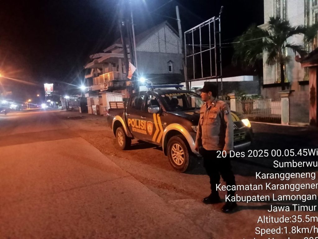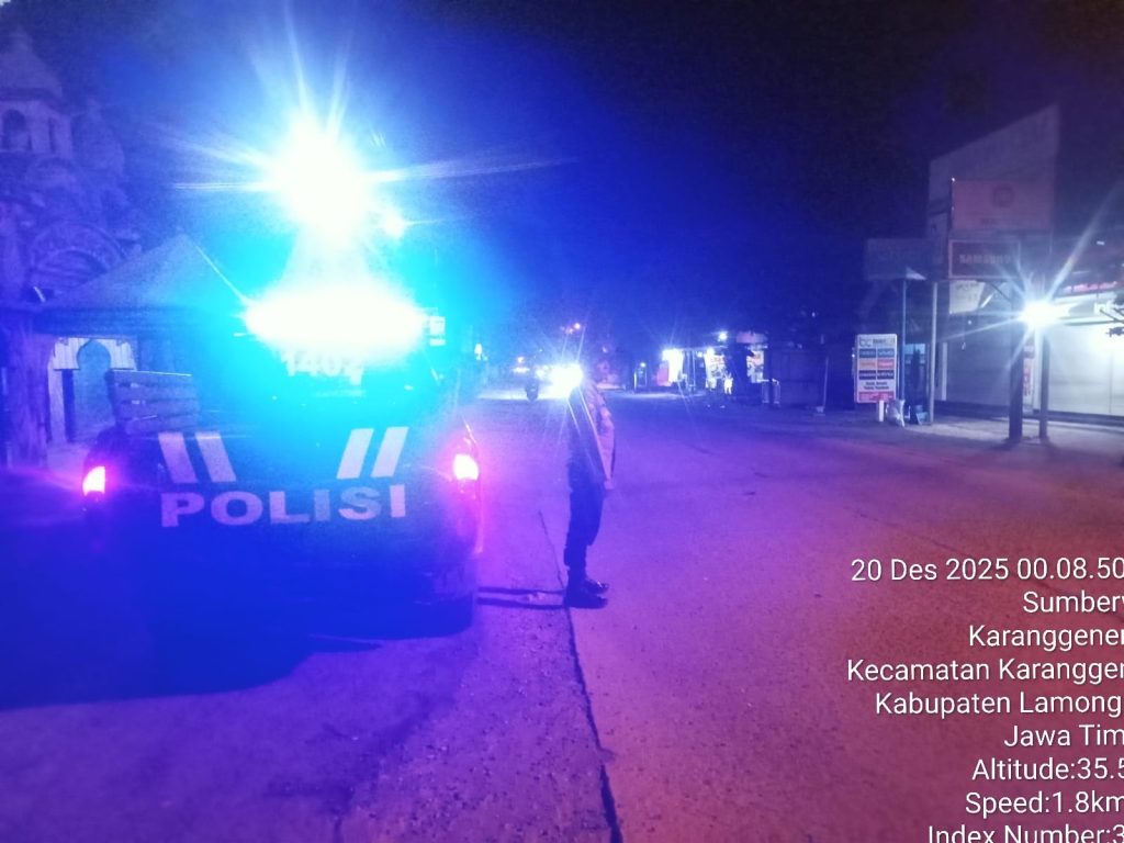 Analisajatim.id | Lamongan – Guna memastikan stabilitas keamanan dan ketertiban masyarakat (Harkamtibmas), anggota jaga Polsek Karanggeneng melaksanakan Patroli Blue Light secara intensif pada Sabtu dini hari, 20 Desember 2025, mulai pukul 00.05 WIB hingga selesai.
