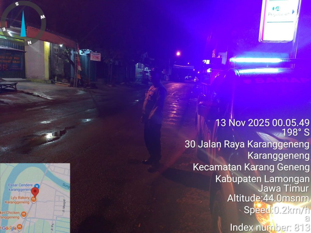 Dalam upaya menjaga stabilitas keamanan di wilayah hukumnya, jajaran Polsek Karanggeneng di bawah naungan Polres Lamongan melaksanakan Patroli Blue Light pada Kamis dini hari (13/11/2025) sekitar pukul 00.05 WIB hingga selesai.