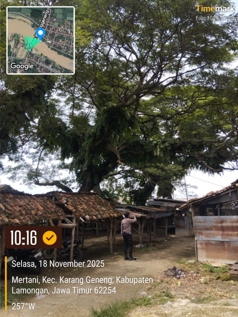 Lamongan, Analisajatim.id – Dalam upaya menjaga keamanan dan memastikan kesiapsiagaan masyarakat menghadapi potensi bencana alam, petugas jaga Polsek Karanggeneng melaksanakan patroli wilayah di Desa Sumberwudi pada Selasa (18/11/2025) mulai pukul 10.00 WIB hingga selesai.