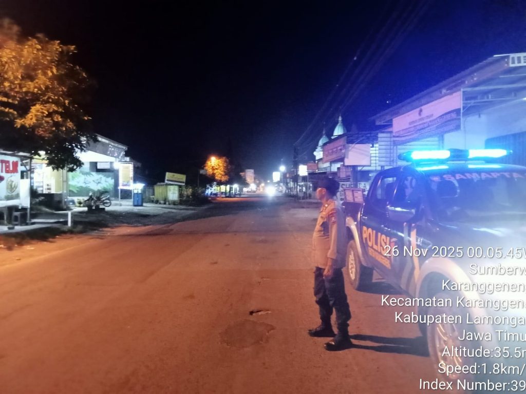 LAMONGAN, Analisajatim.id – Dalam upaya menjaga kondusifitas kamtibmas di wilayah Kecamatan Karanggeneng, jajaran Polsek Karanggeneng melaksanakan patroli malam intensif pada Rabu (26/11/2025) mulai pukul 00.05 WIB hingga selesai. Patroli dilakukan secara mobile dengan menyisir sejumlah titik yang dinilai rawan terjadinya gangguan keamanan dan ketertiban masyarakat (Guantibmas).