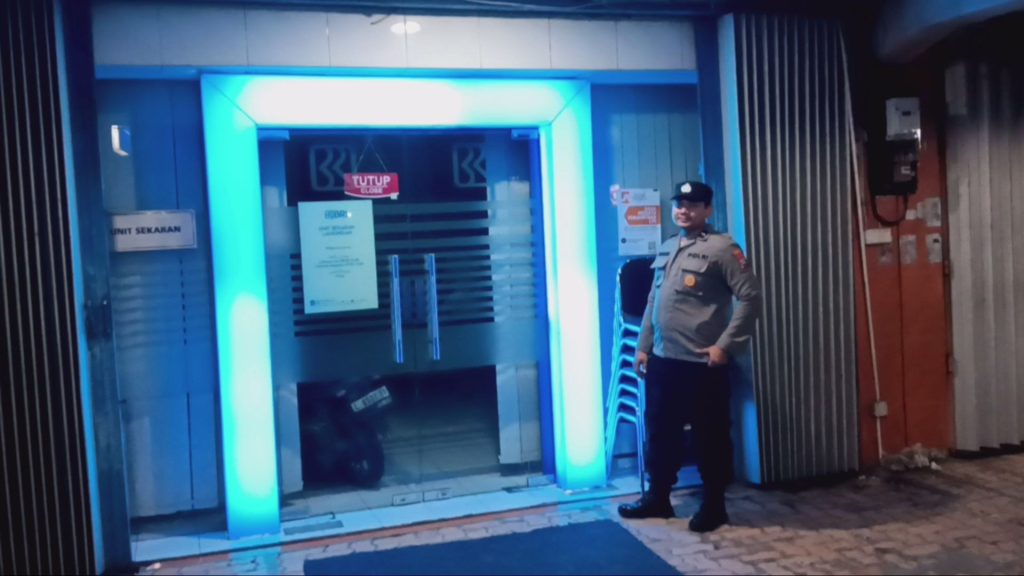 Petugas memastikan lingkungan sekitar perbankan dalam keadaan aman serta melakukan pemantauan terhadap aktivitas masyarakat di sekitar lokasi.