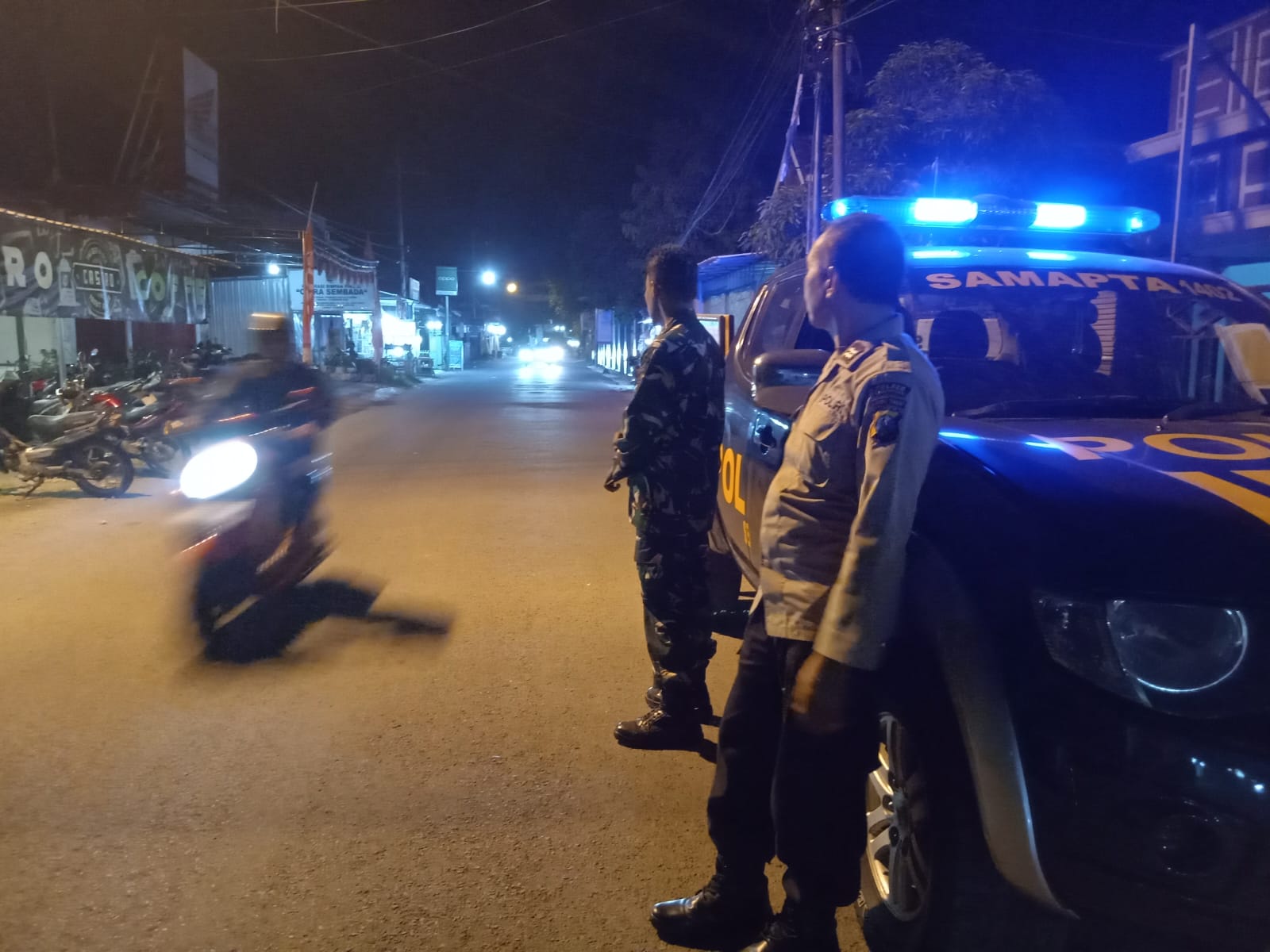 Kegiatan patroli tersebut berlangsung mulai pukul 23.00 WIB hingga selesai, dengan melibatkan personel gabungan yang terdiri dari Aiptu Subiantoro, S.H., Aipda Budi Iswanto, serta Serda Fathur Rahman.