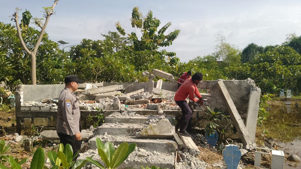 Lamongan, Analisajatim.id — Kegiatan pembongkaran punden atau cungkup di Tempat Pemakaman Umum (TPU) Dusun Rangkah, Desa Ngujungrejo, Kecamatan Turi, Kabupaten Lamongan, pada Jumat 21 November 2025 berlangsung tertib dan kondusif. Proses yang dimulai pukul 08.00 hingga 15.30 WIB itu dipantau langsung oleh aparat keamanan, pemerintah desa, dan unsur terkait.