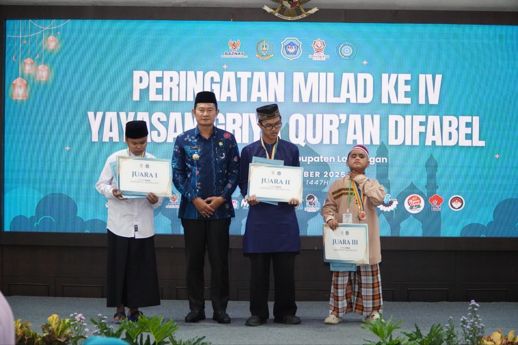 Pada kesempatan tersebut, Bupati Yuhronur juga memberikan apresiasi tinggi kepada Yayasan Griya Quran Difabel yang telah berperan aktif dalam meningkatkan minat, bakat, dan kecintaan para penyandang disabilitas terhadap Al-Qur’an. Menurutnya, yayasan tersebut menjadi inspirasi nyata tentang bagaimana keterbatasan fisik dapat bertransformasi menjadi kekuatan spiritual dan sosial.