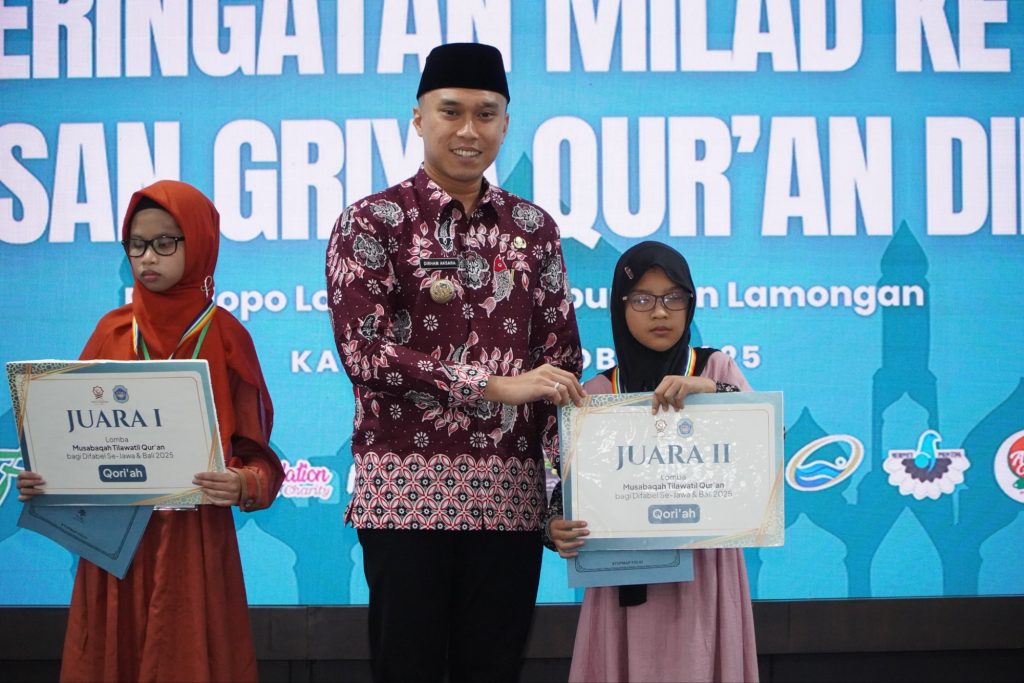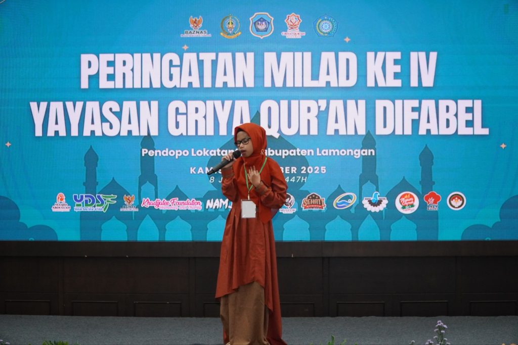 > “Pemerintah Kabupaten Lamongan akan terus mendukung pemberdayaan difabel. Karena hak dan kontribusi masyarakat harus tetap diberikan, keterbatasan fisik tidak menjadi penghalang,” ujar Bupati yang akrab disapa Pak Yes saat menghadiri Milad ke-IV Yayasan Griya Quran Difabel, Kamis (30/10/2025), di Pendopo Lokatantra Lamongan.