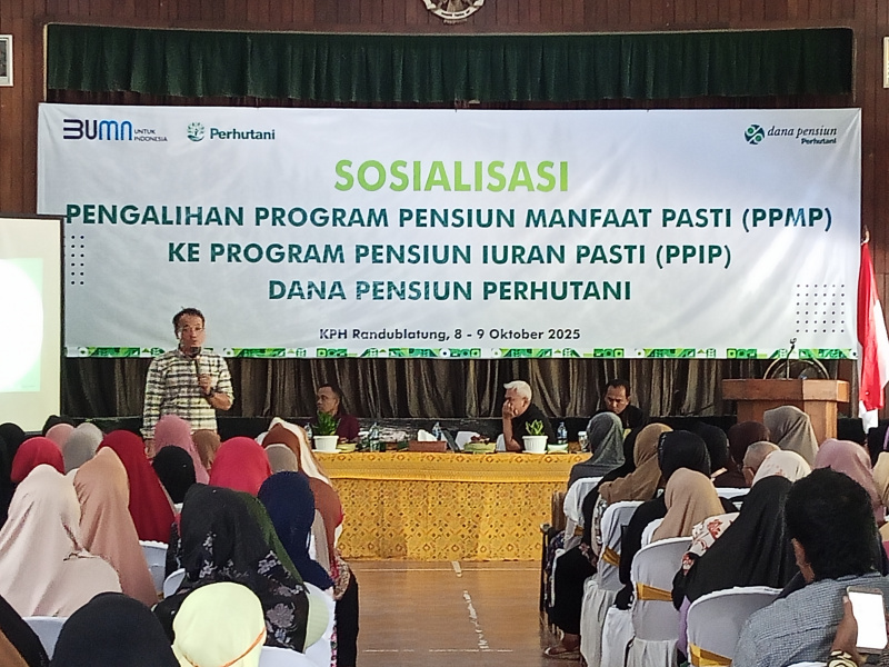 Analisajatim.id | Blora – Perum Perhutani KPH Randublatung bersama Dana Pensiun Perhutani (DPPHT) melakukan Sosialisasi Pengalihan Program Pensiun Manfaat Pasti (PPMP) menjadi Program Pensiun Iuran Pasti (PPIP) kepada ratusan karyawannya, baik yang aktif maupun pasif (purna) di gedung pertemuan Wana Graha. Kamis, (09/10).