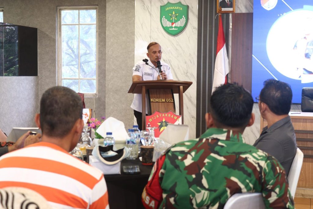Kasiter Kasrem 052/Wkr Kolonel Arh Tamaji S.Sos., M.I.Pol., di tempat acara mengatakan tentang pentingnya sinergi antara TNI AD dan komponen masyarakat untuk menjawab tantangan zaman tanpa melupakan jati diri bangsa.