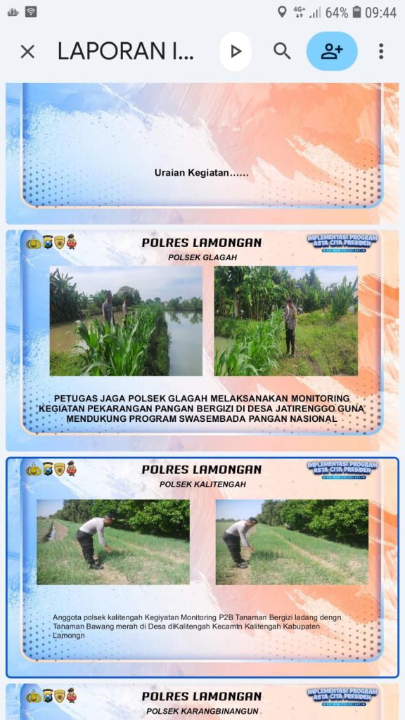 Lamongan, Analisajatim.id – Dalam rangka mendukung program nasional Asta Cita Presiden Republik Indonesia yang salah satunya menitikberatkan pada ketahanan pangan dan gizi masyarakat, Polsek Kalitengah Polres Lamongan melaksanakan kegiatan monitoring Program Pekarangan Pangan Bergizi (P2B) di wilayah hukumnya, pada Jumat (17/10/2025) pukul 09.47 WIB.