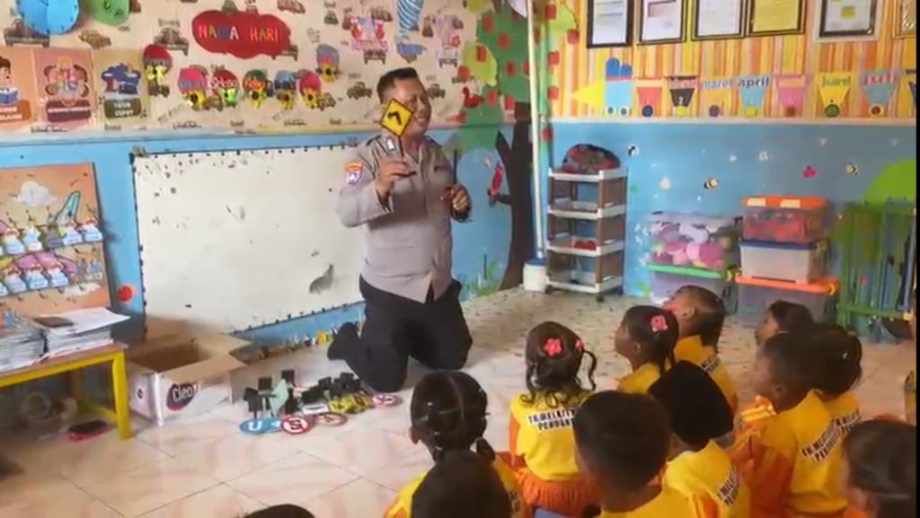 Para petugas kepolisian tersebut tidak hanya memperkenalkan berbagai jenis rambu lalu lintas, seperti rambu larangan, perintah, dan peringatan, tetapi juga menjelaskan makna serta pentingnya mematuhi aturan tersebut dalam kehidupan sehari-hari.