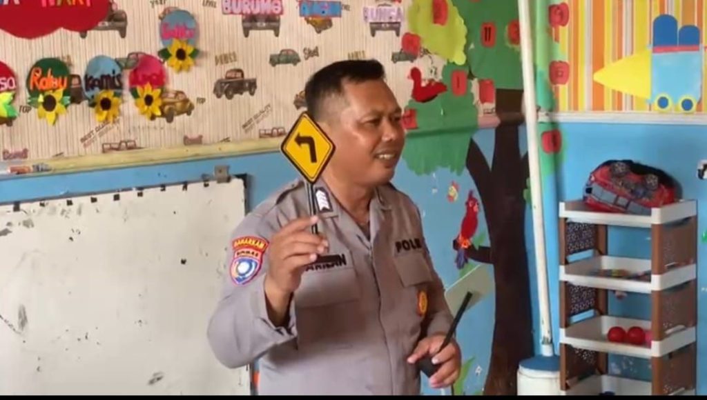 Lamongan, Analisajatim.id โ Dalam upaya membangun kesadaran keselamatan berlalu lintas sejak usia dini, Kanit Binmas Polsek Kalitengah Polres Lamongan melaksanakan kegiatan pengenalan rambu-rambu lalu lintas kepada anak-anak Taman Kanak-kanak (TK) Melati Harapan di Desa Pengangsalan, Kecamatan Kalitengah, Kabupaten Lamongan.