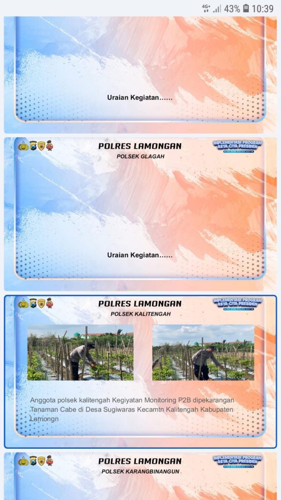 Polsek Kalitengah melaksanakan monitoring Program Pangan Bergizi (P2B) berbasis pekarangan rumah di Desa Sugiwaras, Kecamatan Kalitengah, Kamis (4/12/2025) pukul 10.41 WIB.