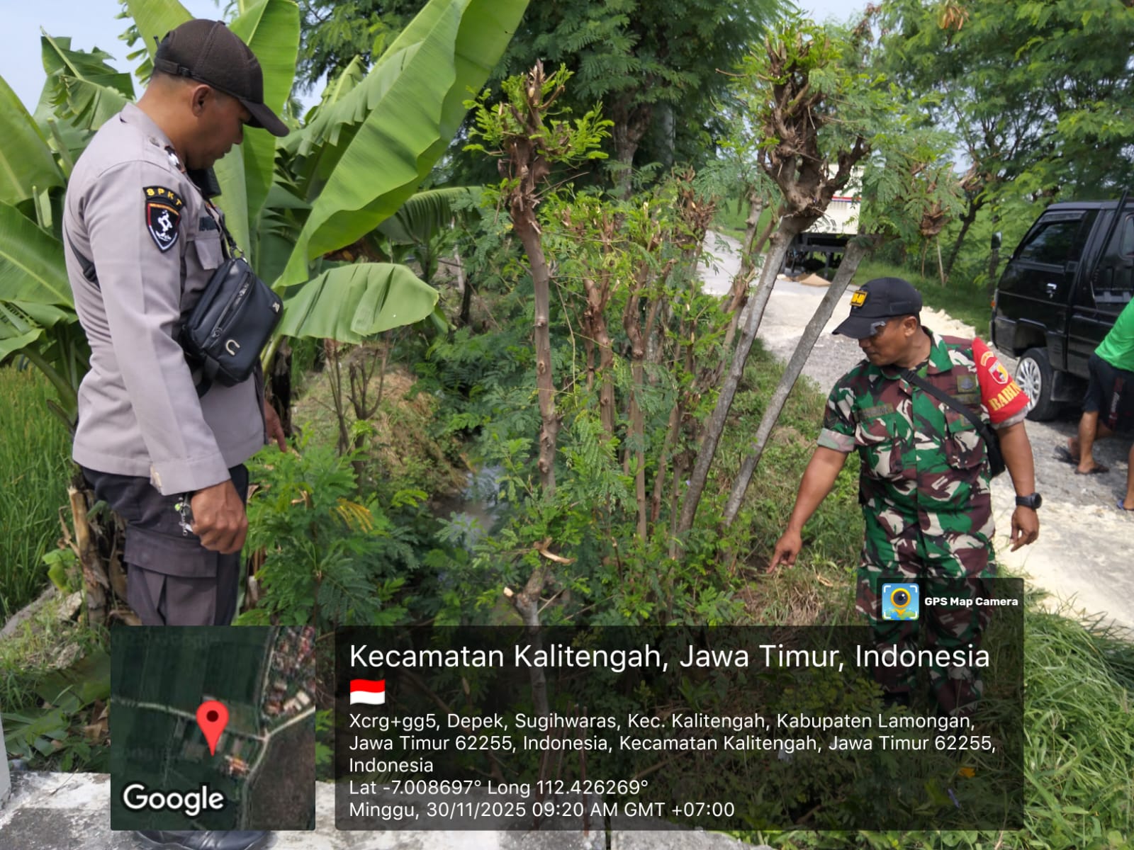 Lamongan – Analisajatim.id | Aipda Sugianto selaku KA SPKT C Polsek Kalitengah Polres Lamongan memimpin Patroli Kota Presisi (PKP) khusus antisipasi banjir di Desa Sugihwaras, Kecamatan Kalitengah, Kabupaten Lamongan, Minggu (30/11/2025) mulai pukul 08.20 WIB hingga selesai.