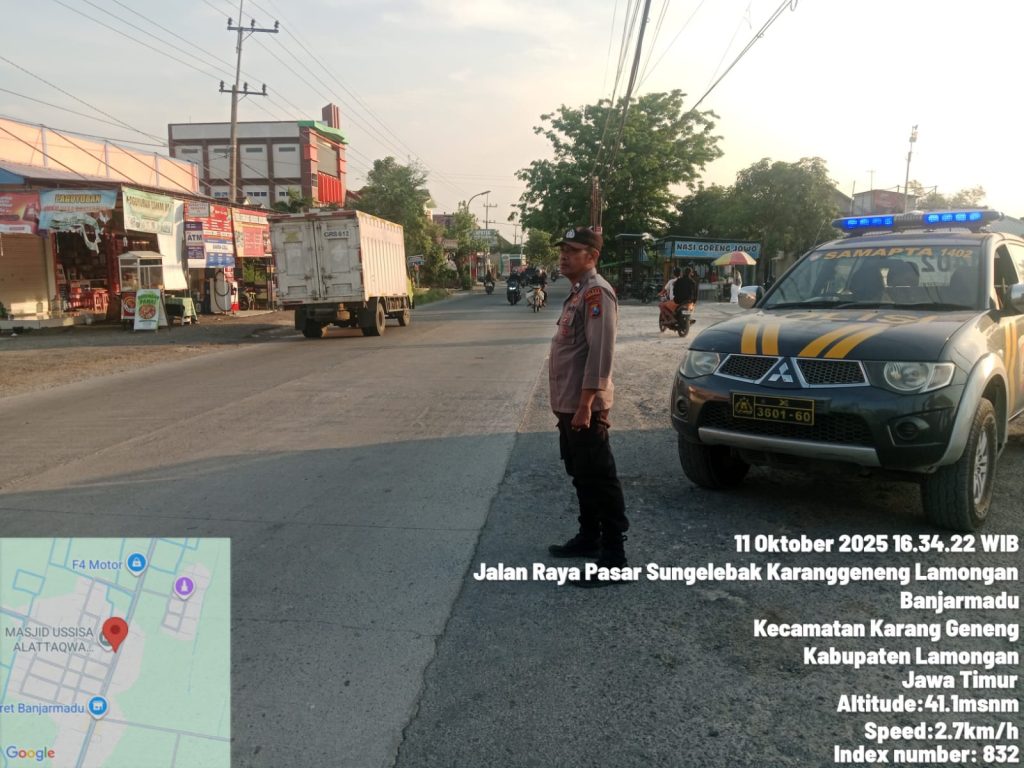 Lamongan, Analisajatim.id – Guna menjaga situasi keamanan dan ketertiban masyarakat (Kamtibmas) tetap kondusif di wilayah hukumnya, Polsek Karanggeneng Polres Lamongan melaksanakan patroli sore pada Sabtu (11/10/2025) pukul 16.00 WIB hingga selesai, dengan fokus pengawasan di jalan raya Sukodadi–Karanggeneng dan area Rawa Pucangro yang kerap dijadikan lokasi balap liar oleh remaja.