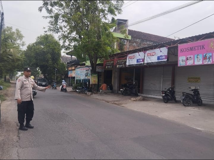 Polsek Karanggeneng Lakukan Pengaturan Lalu Lintas Pagi di Depan Pasar Cendere, Arus Kendaraan Berjalan Lancar