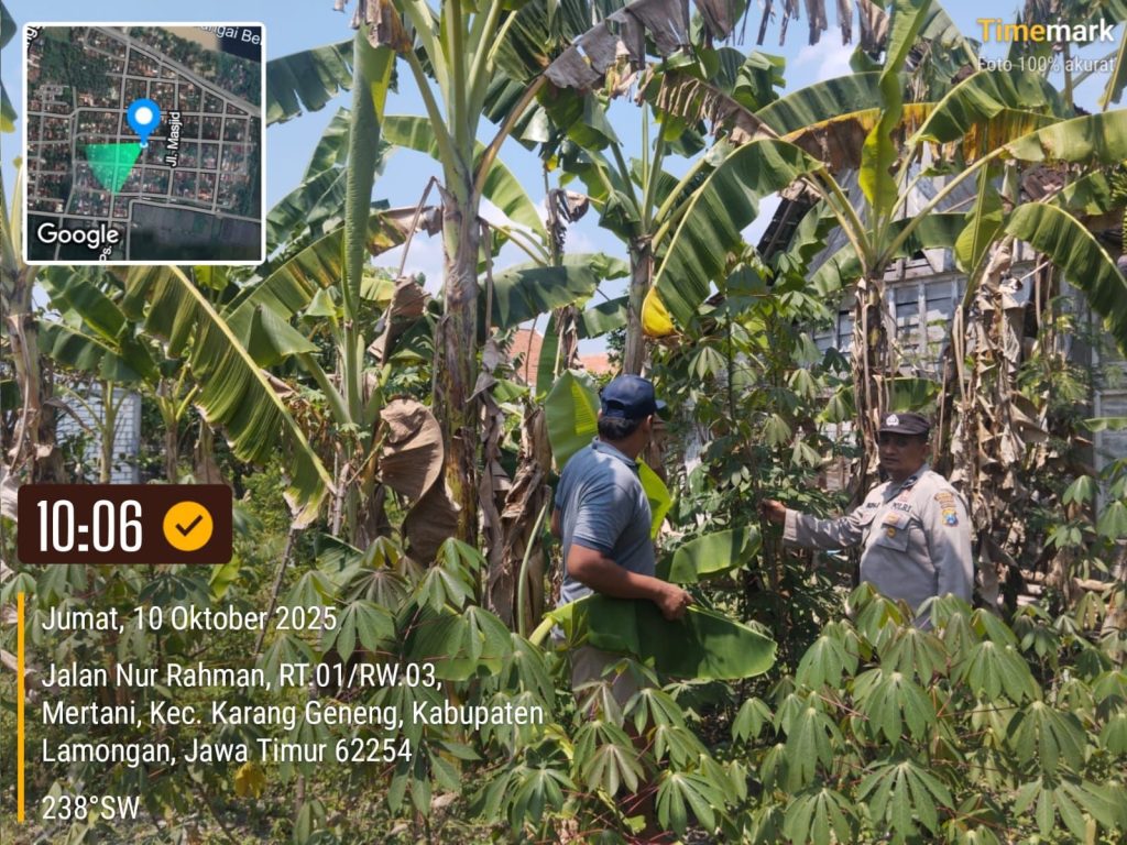 Dalam kegiatan tersebut, petugas melakukan pengecekan terhadap kondisi tanaman yang ditanam di lahan pekarangan, seperti pisang dan singkong, serta memberikan motivasi kepada pemilik lahan agar terus merawat tanaman dengan baik sehingga hasilnya optimal.