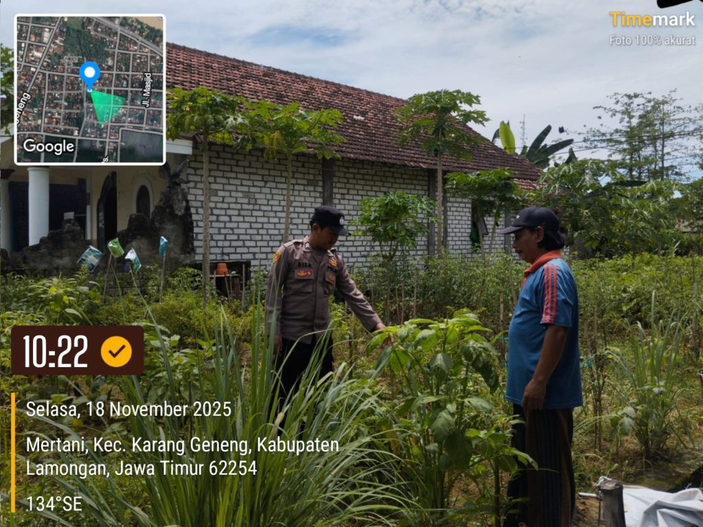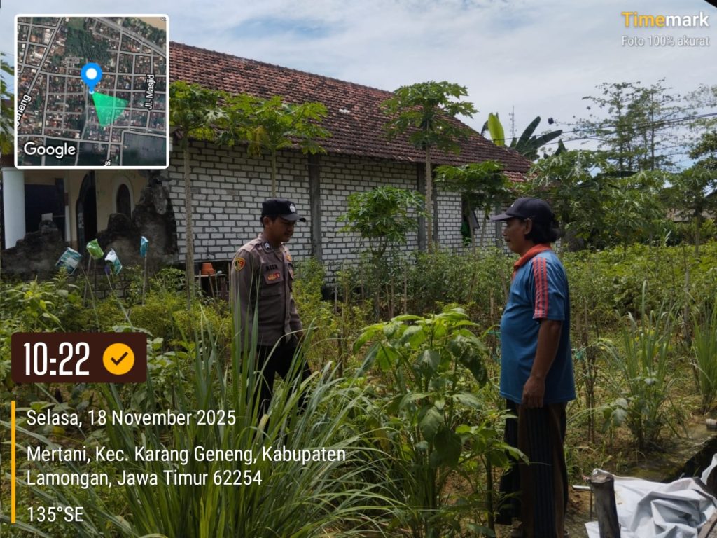 Kegiatan dimulai sekitar pukul 10.17 WIB di pekarangan milik Bapak Samsul, yang berlokasi di RT/RW 01/04 Desa Mertani, Kecamatan Karanggeneng. Monitoring lapangan ini dipimpin oleh AIPTU Hardi bersama Briptu Riza sebagai bagian dari tugas Polri melalui peran Polisi Penggerak Desa (PPD).