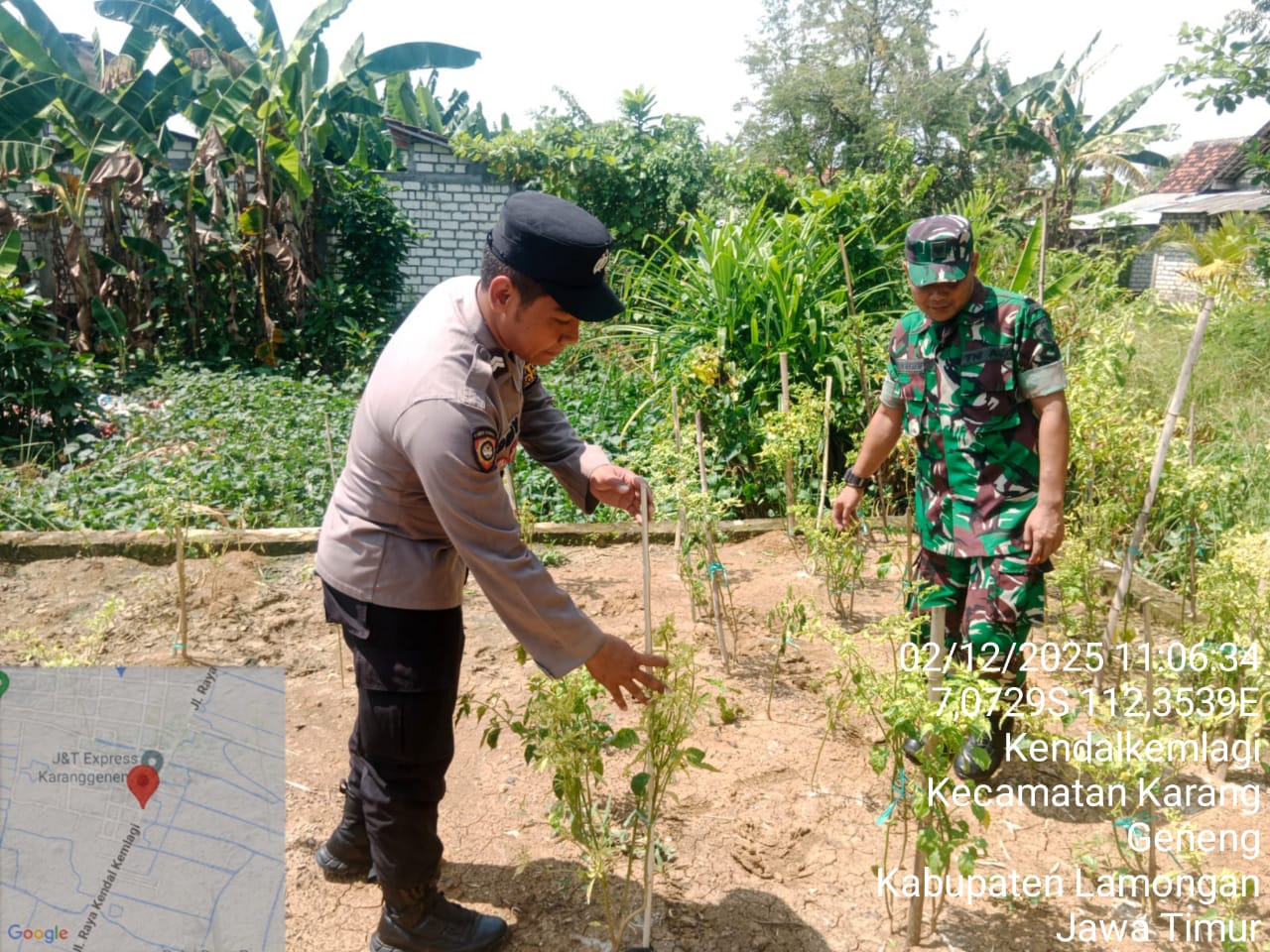 Aipda Ach. Zainuri, A., dan Briptu Dedy Setiawan, S.H., mendatangi lahan pekarangan milik Bapak Mukmin di RT 02/RW 03. Keduanya bertindak sebagai Polisi Penggerak Desa (Poldak) guna mendukung program ketahanan pangan nasional.