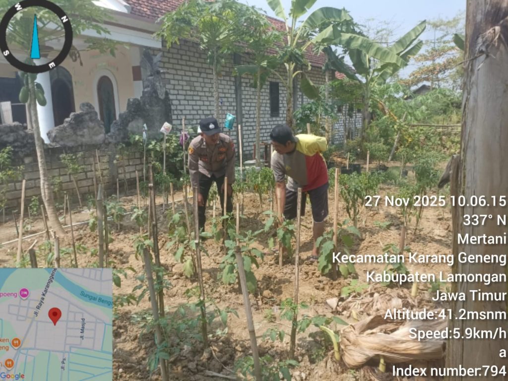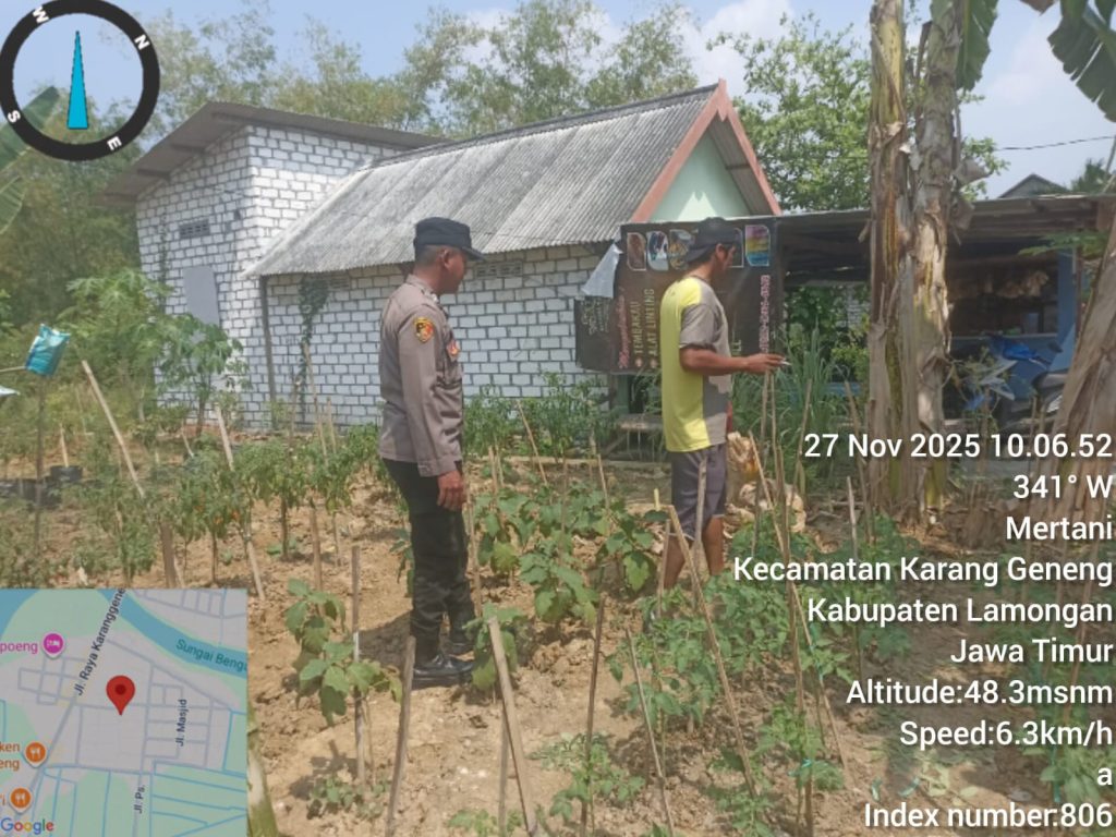 Dua personel Polsek Karanggeneng, Aiptu Hardi dan Briptu Riza FN, melaksanakan monitoring sekaligus pendampingan Program Pangan Bergizi (P2B) berbasis pekarangan warga di Desa Mertani, Kecamatan Karanggeneng, Kamis (27/11/2025) mulai pukul 10.00 WIB hingga selesai.