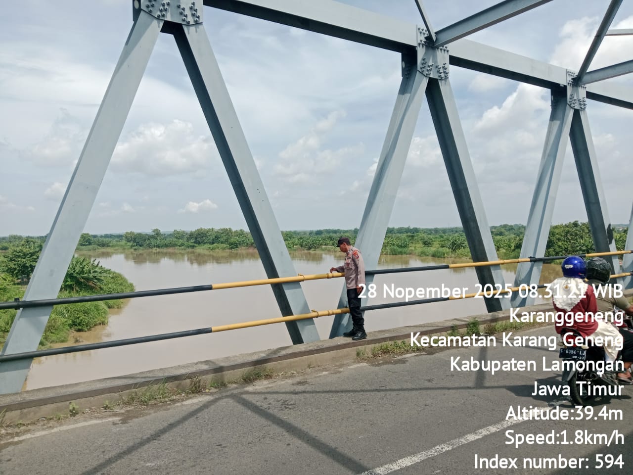 Analisajatim.id|Lamongan, – Personel Polsek Karanggeneng Polres Lamongan melaksanakan pemantauan rutin debit dan ketinggian air Sungai Bengawan Solo di wilayah hukumnya, Jumat (28/11/2025) mulai pukul 08.30 WIB hingga selesai. Pemantauan kali ini difokuskan di area Jembatan Desa Karanggeneng, Kecamatan Karanggeneng, yang menjadi salah satu titik rawan luapan saat musim hujan.