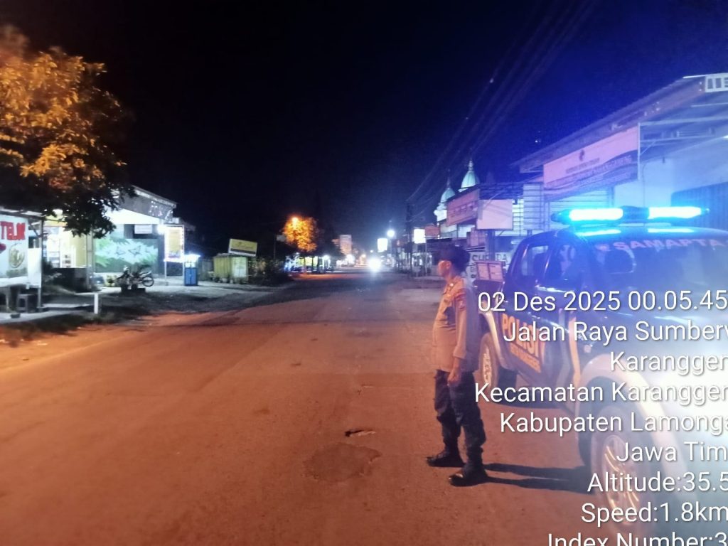 Analisajatim.id | Lamongan, – Aipda Nur Said dan Aipda Sugeng P. dari Polsek Karanggeneng melaksanakan patroli blue light di wilayah hukumnya, Selasa (2/12/2025) mulai pukul 00.05 WIB hingga selesai, guna mengantisipasi segala bentuk gangguan kamtibmas.