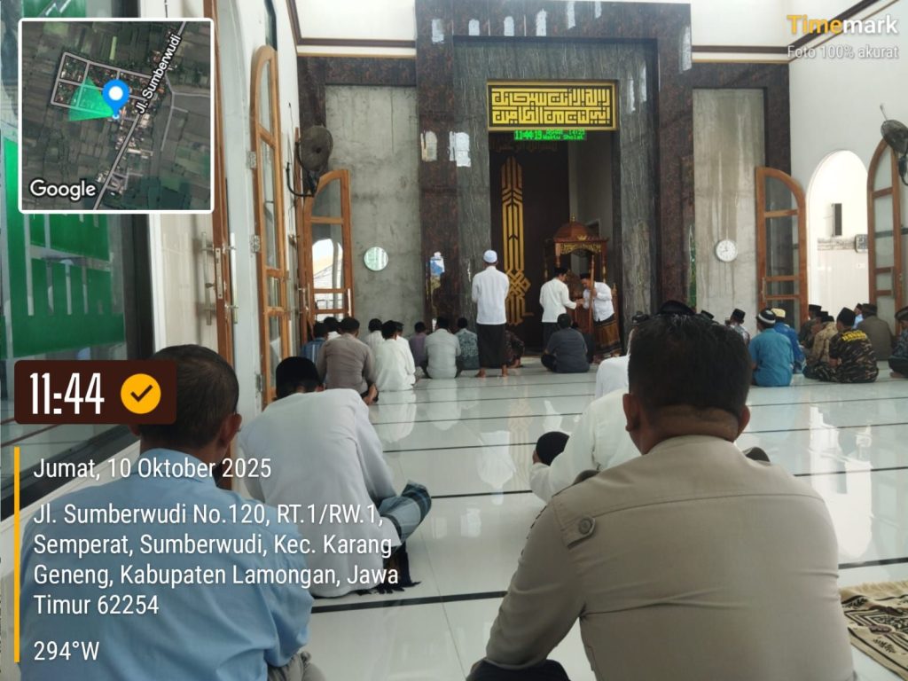 Kegiatan tersebut dilaksanakan pada Jumat (10/10/2024) sekitar pukul 11.35 WIB hingga selesai, bertempat di Masjid Hidayatul Muslimin, Dusun Semperat, Desa Sumberwudi, Kecamatan Karanggeneng, Kabupaten Lamongan.