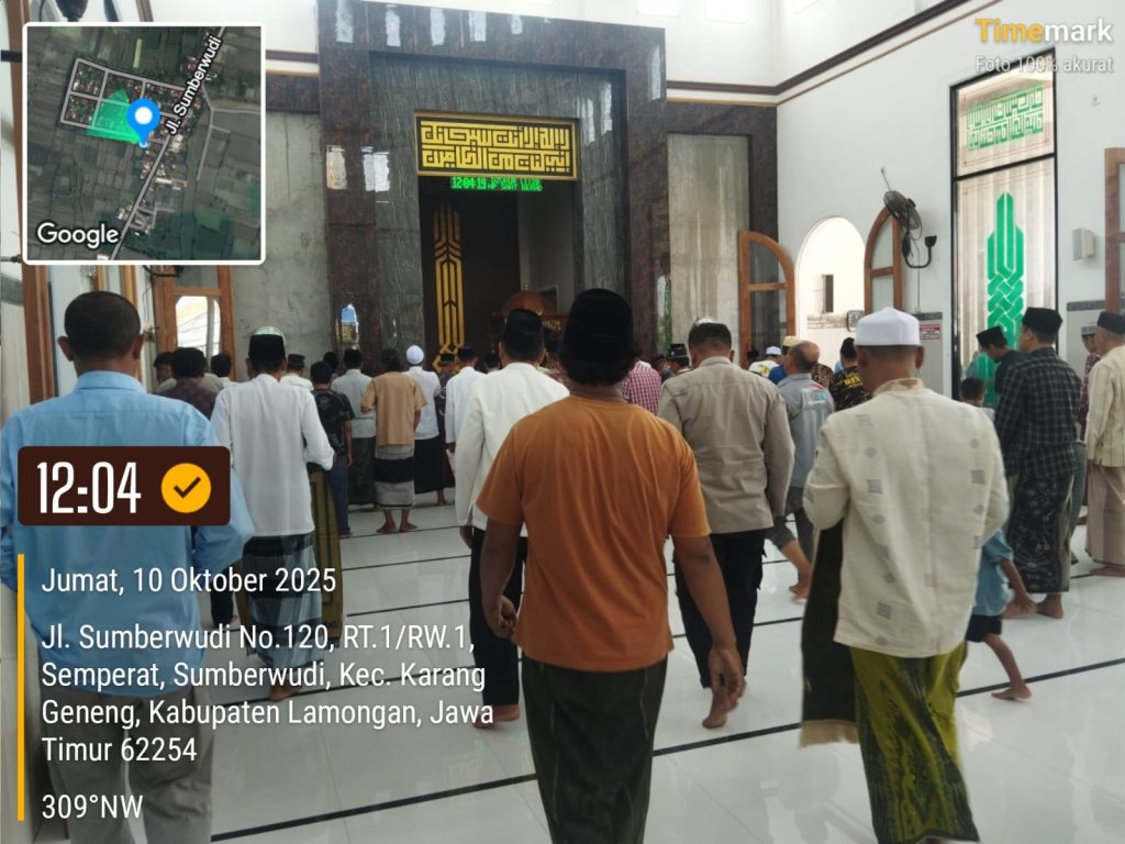 Kegiatan tersebut dilaksanakan pada Jumat (10/10/2024) sekitar pukul 11.35 WIB hingga selesai, bertempat di Masjid Hidayatul Muslimin, Dusun Semperat, Desa Sumberwudi, Kecamatan Karanggeneng, Kabupaten Lamongan.