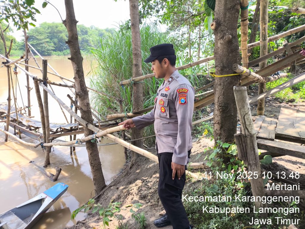 Dalam rangka mengantisipasi potensi bencana alam di musim penghujan, Polsek Karanggeneng melaksanakan patroli kewilayahan monitoring rawan bencana di sejumlah titik di Kecamatan Karanggeneng, Kabupaten Lamongan, pada Selasa (11/11/2025).