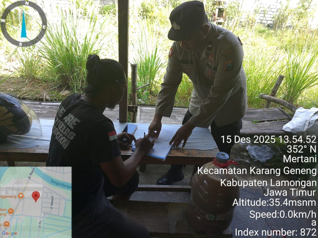 Analisajatim.id | Lamongan – Komitmen Polsek Karanggeneng dalam menegakkan Peraturan Daerah terus dibuktikan. Jajaran Polsek Karanggeneng berhasil mengamankan minuman keras (miras) jenis arak/toak dari sebuah warung di Desa Mertani, Kecamatan Karanggeneng, Kabupaten Lamongan, Senin (15/12/2025).