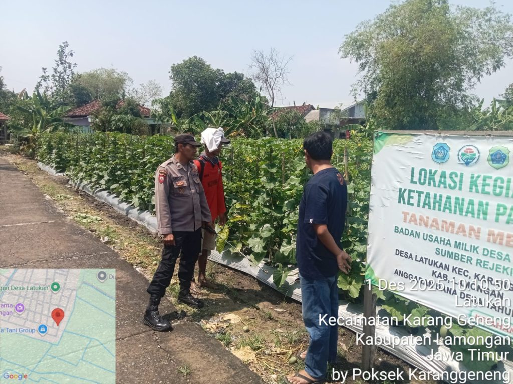 “Kami lihat tanaman melonnya sudah sangat bagus, tinggal diperkuat perawatan dan pemupukan. Kalau semua pekarangan warga seperti ini, kebutuhan pangan keluarga terpenuhi dan bahkan bisa dijual,” ujar Aipda Bayu S sembari memberikan tips teknis kepada pemilik lahan.