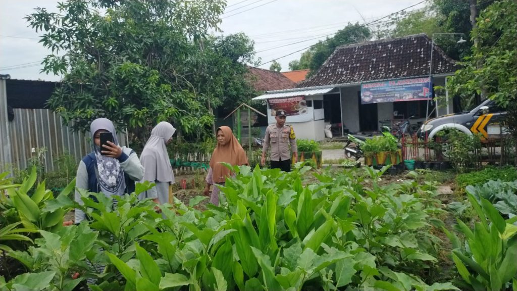 Petugas yang hadir adalah Aiptu Choliq Tarwanto dan Briptu Alvin. Mereka melakukan koordinasi langsung dengan warga setempat untuk memantau pelaksanaan program P2B, sekaligus mendorong masyarakat agar aktif memanfaatkan lahan pekarangan rumah dengan menanam tanaman bergizi seperti berbagai jenis sayuran (bayam, kangkung, cabai, tomat, dan lainnya), buah-buahan, serta tanaman obat keluarga.